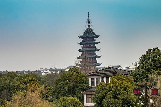 盘门景区各景点较为紧凑,二、三个小时足以尽兴。从东门入得园来,便是那秀美古朴的瑞光塔。站在塔下仰望,瑞光塔矗立云天,八面迎风,关键还在于塔身并无臃肿之感,而是显得亭亭玉立,犹如神女的化身。瑞光塔的西面,依次是四瑞堂、水上蓬莱及丽景楼,与此相呼应的南北两侧是双亭廊桥与水帘洞;跨过碧波、窥塔两桥便来到了位于城门前的伍相祠;走过伍相祠,就来到盘门城墙。登上城墙,古风来袭,仿佛置身沙场。顺便说下,站在城墙上,是拍摄吴门桥风姿的最佳点。