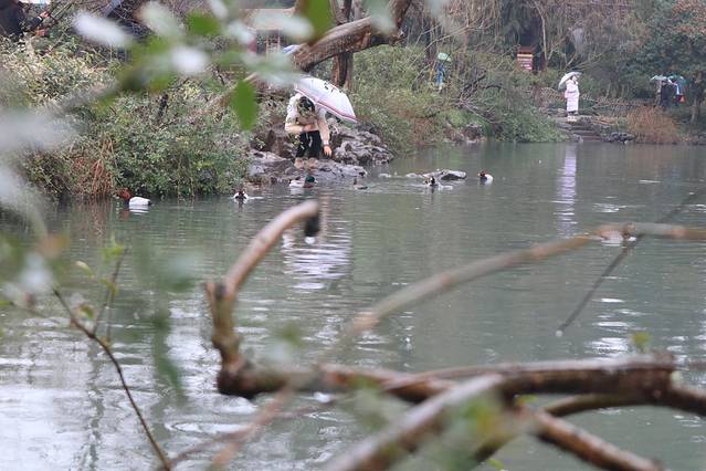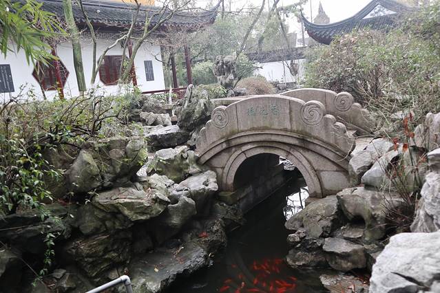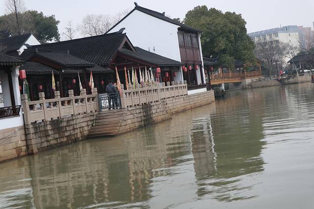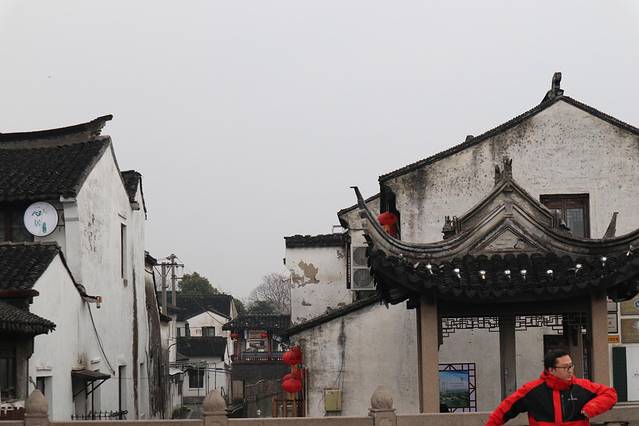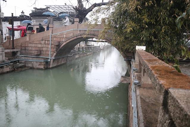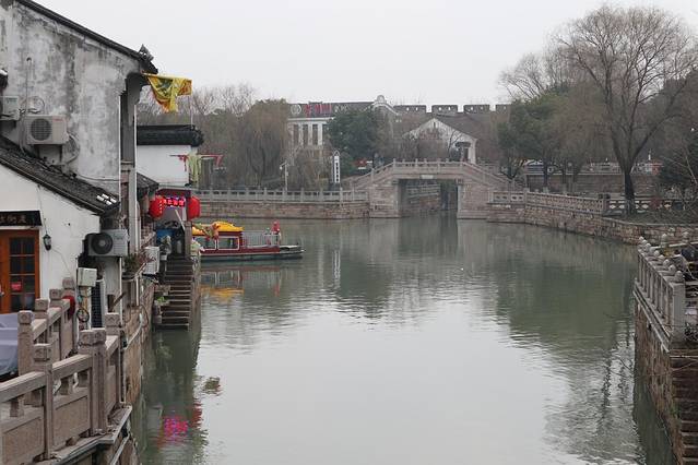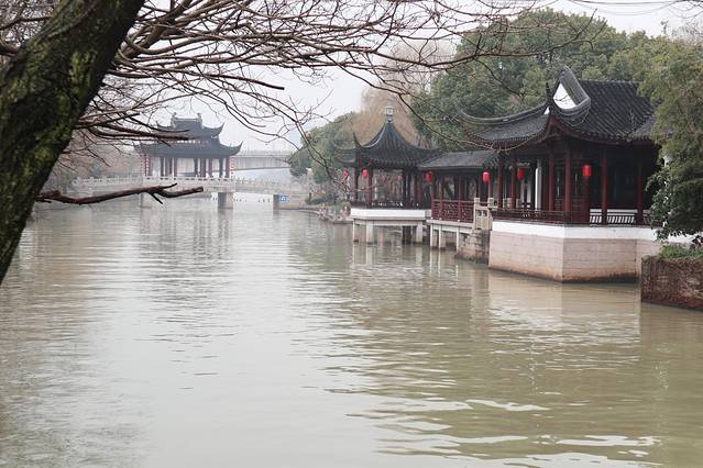 站在寒山寺的前,对面就是枫桥景区。张祜的《枫桥》也是广为传诵的佳作,诗云:长洲苑外草萧萧,却忆重游岁月遥。惟有别时因不忘,暮烟疏雨过枫桥。