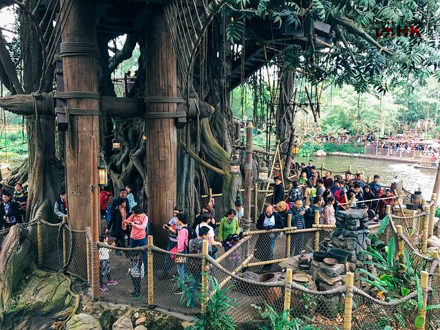 探险世界,这个是迪士尼的经典园区之一。以湖泊及泰山树屋为中心,茂密的植被、远古部落及图腾元素让游客仿佛置身原始雨林。游客可搭乘特制的“竹筏”前往湖心的泰山树屋,你可以在这里重温《人猿泰山》的故事,或是跳上探险船深入雨林腹地。