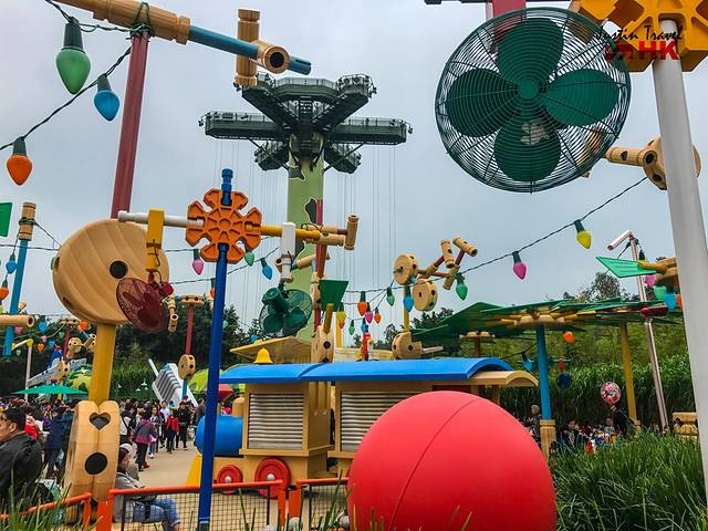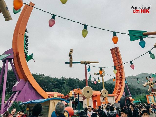 这里的主题区是动画《玩具总动员》为设计背景,游客宛如缩小至玩具大小,迈入胡迪、巴斯光年的巨型玩具世界在这里带你回到童年时光。