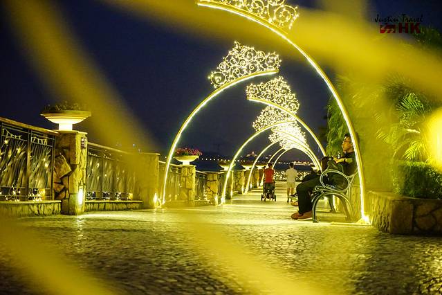 夜幕降临,海洋公园里仿佛一切是那么美好