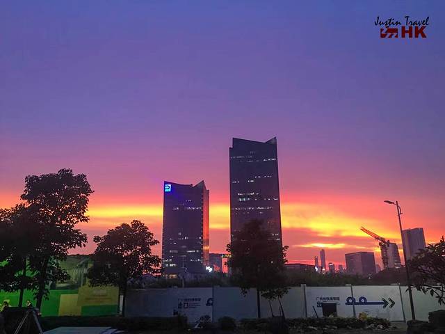 天上的云从西边一直烧到东边,红彤彤的,好像是天空着了火。这样的美景真的很难得