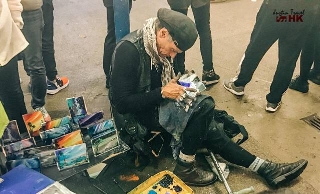 还有在路边画画的老人,都是靠着手指作画的高超手艺在很小的板上细腻画出美妙的图案,收获了大家的赞赏