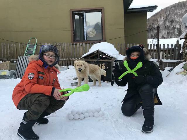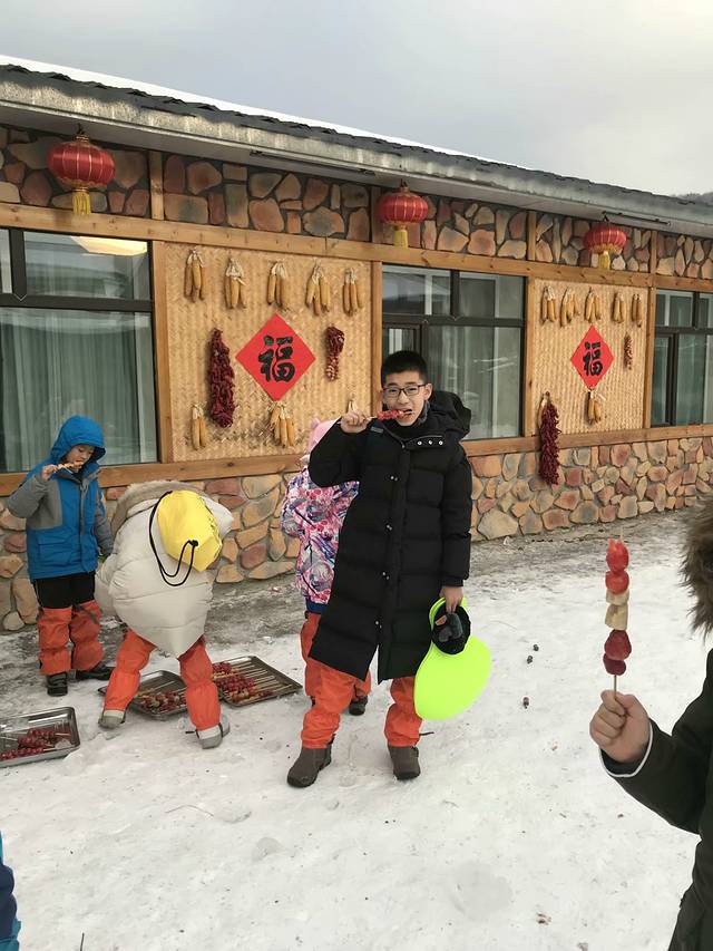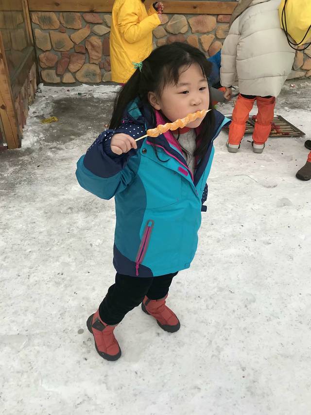 到了雪乡之后先休息了一下,从早晨走到下午腿很酸,但是孩子们的战斗力已久,我们住的农家正好有院子,孩子们就在院子里面玩,我们家长先休息了。