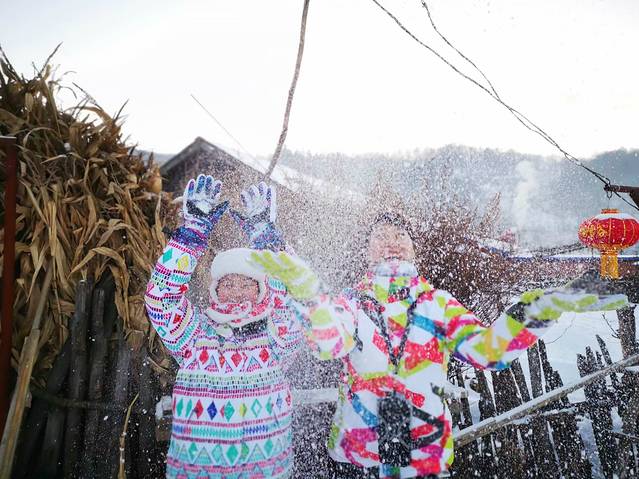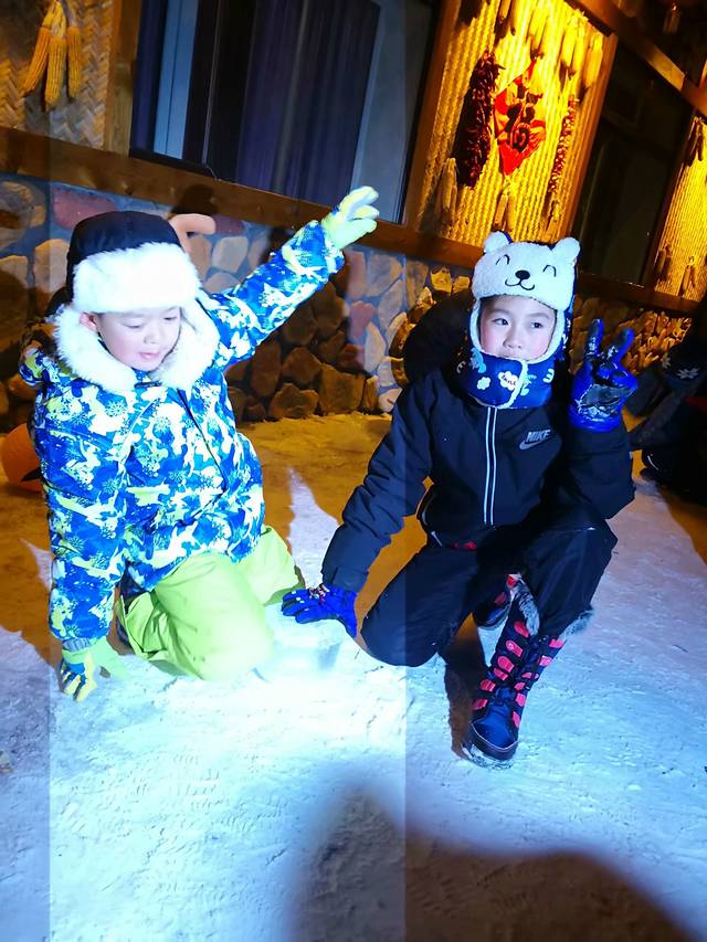 到了雪谷汤圆先让我们换上了厚厚保暖的衣服,置身于白雪中的村庄出现在我们面前,大家相当兴奋,放好行李后,我们便迫不及待的到村庄里拍照、山坡上玩雪,打雪仗,滑雪圈。之前有介绍相比雪乡,东升比较纯朴,所以我们在外边玩到很晚,想多感受一下东升纯朴的氛围。