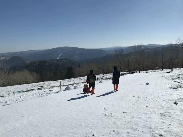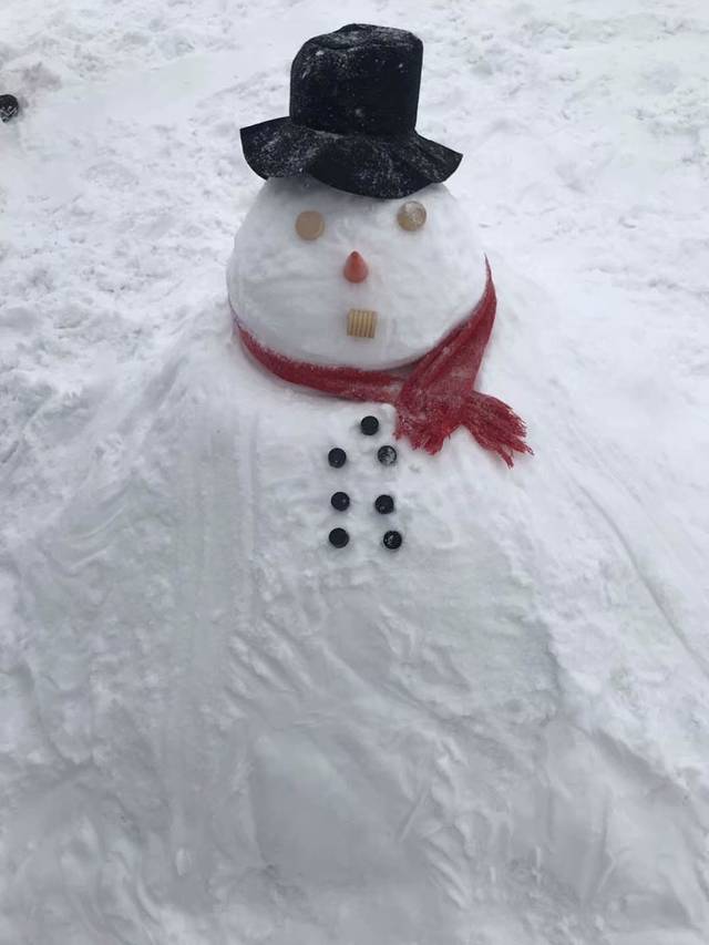 下山的路上我们一起堆了一个大大的雪人,细心的汤圆提前准备了雪人的帽子围巾,才让我们的雪人在其他的里边显得与众不同,非常好看。