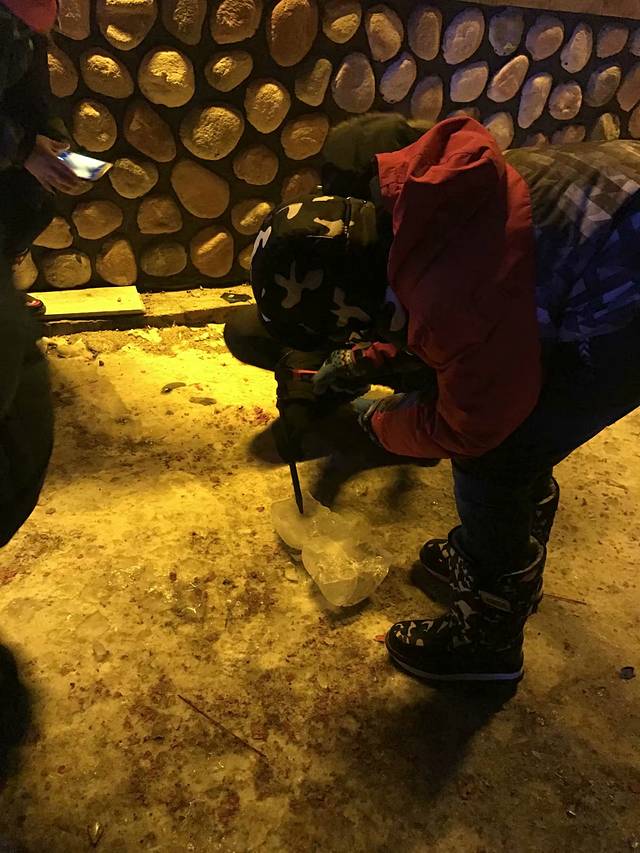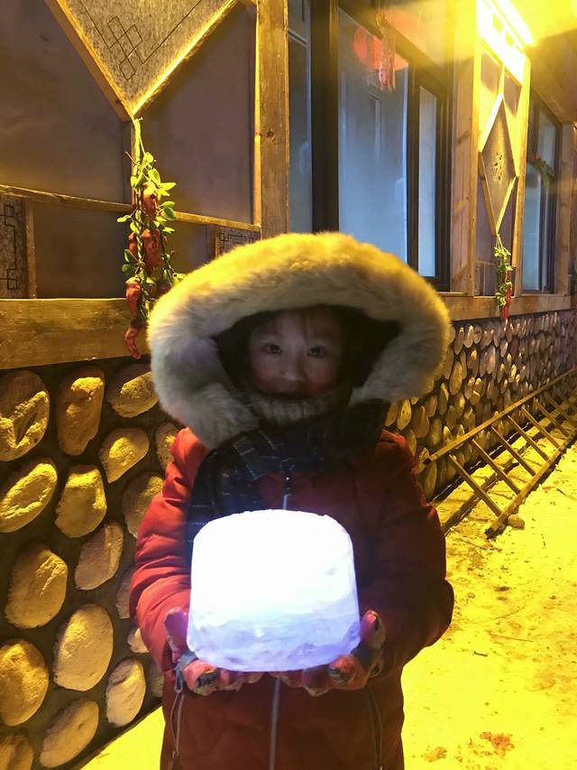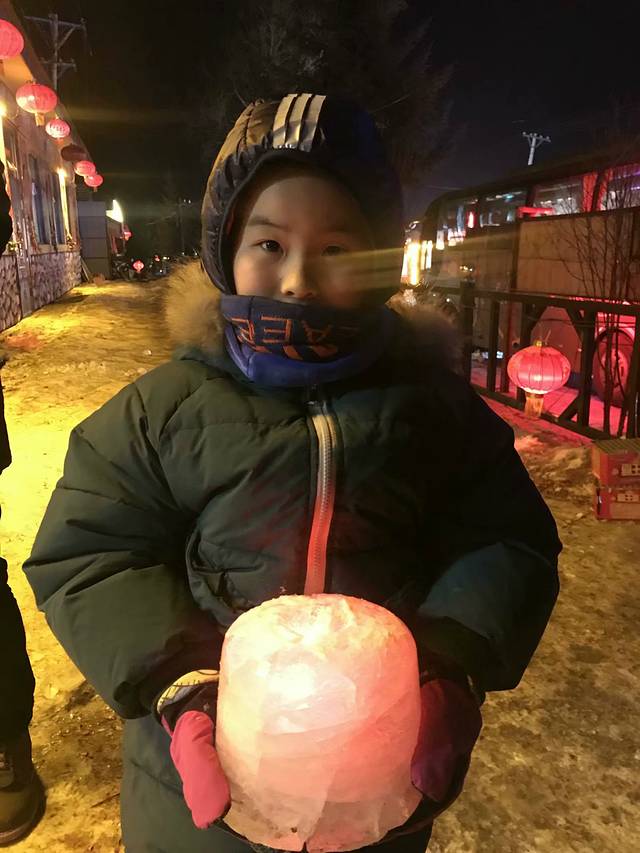 回来的时候农家热腾腾的饭菜已经准备好了,东北菜我觉得超级好吃,晚餐后我们还一起制作了冰糖葫芦,剪了窗花,还制作了冰灯,最后大家围着篝火,看火苗上下攒动,如同是乐符在舞动,大家一起欢歌的感觉,比起城市最好的KTV都要给力。院落里灯火通明,火红的灯笼挂满了院落的边边角角,挂在墙上的玉米,似乎在好奇地望着我们。