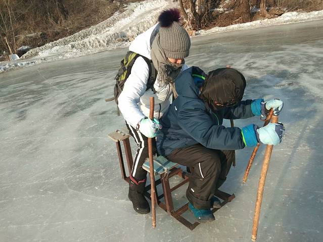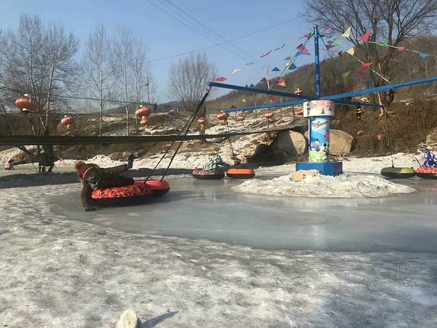 到了之后我们先到了房间换上了暖和的衣服,然后去了这里冬季的游乐场,只能存活两三个月,因为所有活动都是在一条河上玩的,雪上飞碟,冰上足球,冰上自行车,都很好玩。