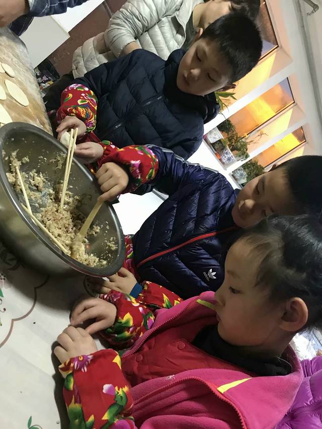 下午我们一起包了饺子,晚上吃完饭汤圆还组织了个联欢会,教孩子们唱东北二人转和扭秧歌。