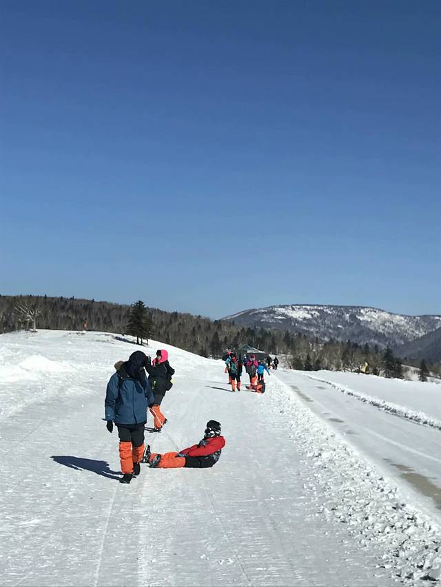 雪谷又名东升林场,它与雪乡(双峰林场)只隔着一座羊草山,通常从雪谷到雪乡的徒步穿越路线指的就是翻越羊草山。不少驴友去过雪谷和雪乡后却偏爱雪谷,因为目前为止雪谷还未被深度商业化,因而更为纯朴与原生态。雪乡位于羊草山的阳面,而雪谷位于羊草山的阴面,故而冬季时这一带山中的积雪会更厚,从雪谷翻越羊草山到雪乡,大约需要4-6小时,这条穿越线路主要是体验雪地徒步,适合体力好的驴友。我们从哈尔滨出发大约车程6小时到达雪谷,一路上汤圆为我们介绍了许多当地民间的小故事,带着孩子们玩游戏,昨天听说要坐6个小时车孩子还抗议来着,今天玩得特别开心。,中间到了路过的镇上吃饭,吃完饭后坐车大约两个小时就到达雪谷了。