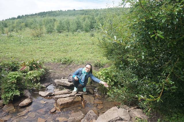 我们所到是沽源县的滦河源头,看见涓涓的溪流,忍不住手捧喝了一口,清澈甘甜,清凉舒爽