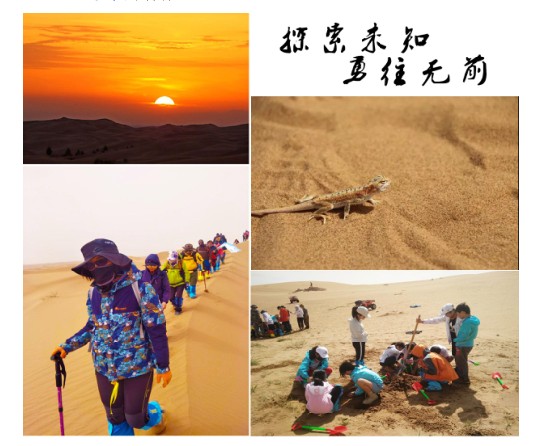 08:00 体验徒步3公里,深入腾格里沙漠、和沙漠麻蜥一起寻找断垣残壁,和那未知的脚印一起寻找时间留下的动物巢穴化石,和自己同行的小伙伴一起来一场沙漠赛跑吧!初次体验沙漠野外生存第一要素——水资源。和小伙伴体验一场沙漠取水的活动。