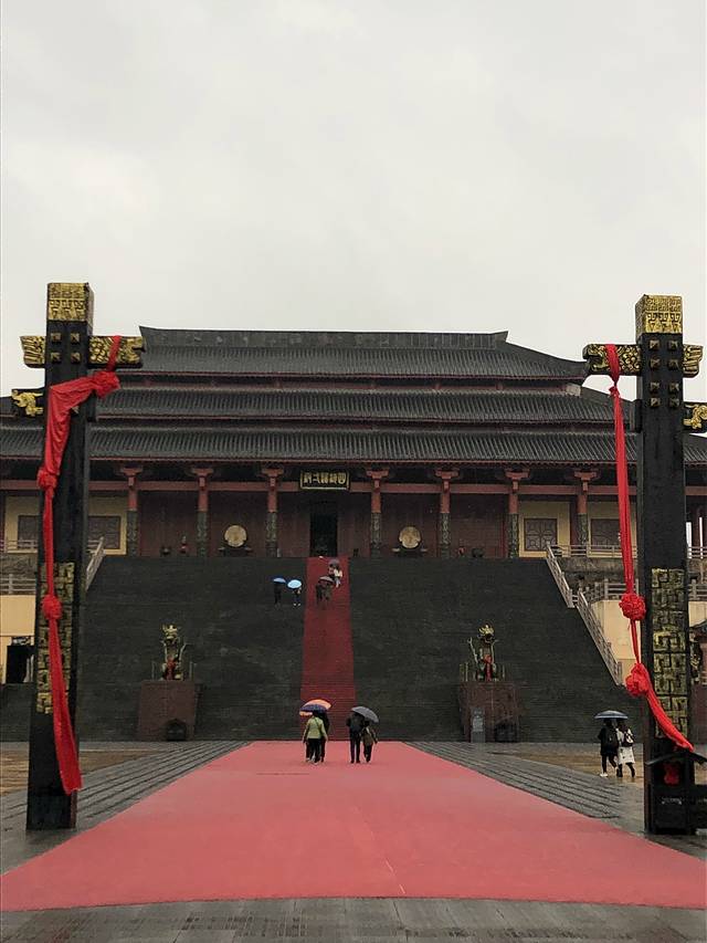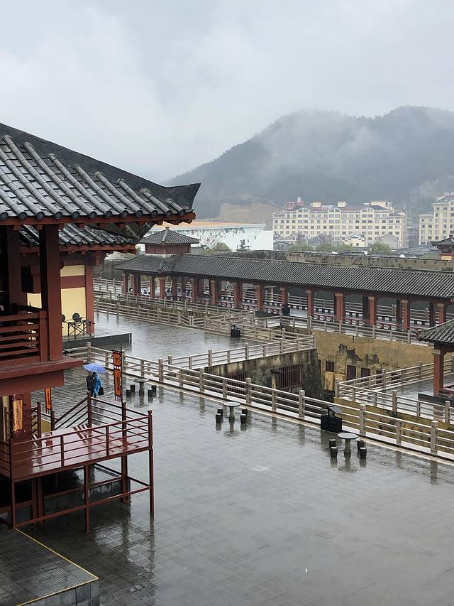 尽管阴雨绵绵,可是好不容易才有的三天假期,不想虚度,于是找了个近点的景区,来一场说走就走的旅行,不为别的,只为放飞心情。抢购到周五晚上的卧铺票两张(Z45 武昌-义乌 ),哈哈!睡一觉就到义乌了。义乌火车站出站后对面就是客运站,在售票窗口买了第一班到横店的班车,车票20元一张,客运站(6:00-18:00)滚动发车,大约一刻钟一趟,不得不说坐车很方便,大约七十分钟的车程抵达横店客运站,车上我在飞猪上购买了横店五景点联票(430元/人)。公交车站就在客运站里面,横店的旅游公交车到任何景点都是1元/人,大约半小时一趟,我们直接乘坐1路B线到达第一目的地秦王宫。