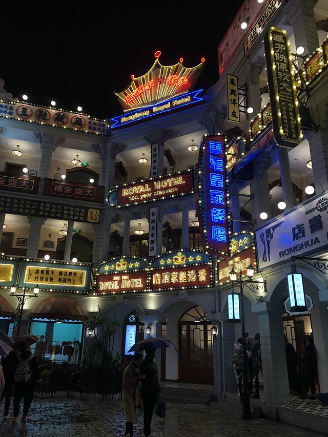 广州街香港街景区是为配合谢晋导演拍摄历史巨片《鸦片战争》而兴建的的一个景区,是横店影视城的发祥地。景区后扩建香港街,古道纵横交错,珠江穿城而过,两街在横店接壤而处。拍照也比较有年代感的感觉,景区有一个专门换装的地方,只需交纳押金即可,可以换上民国时期的衣服游览景区,我是奔着大型表演去的,结果因天气原因表演都停了,很遗憾。不过夜景很美,看图