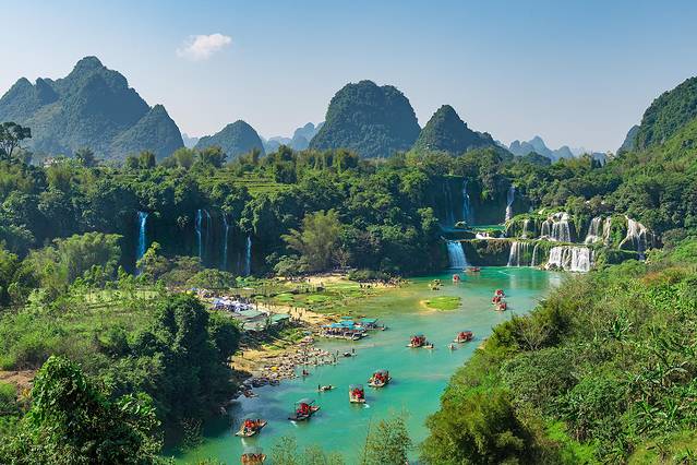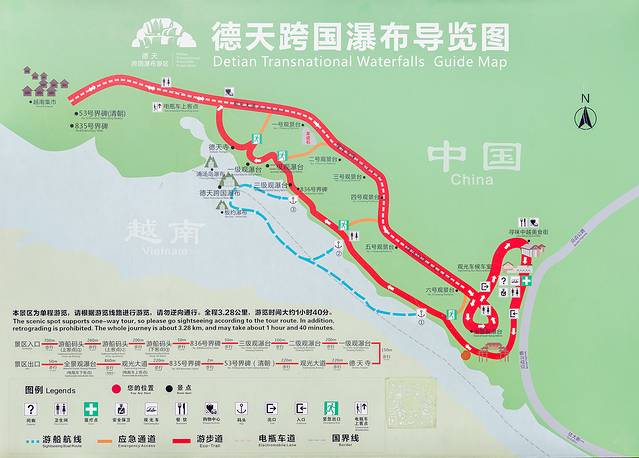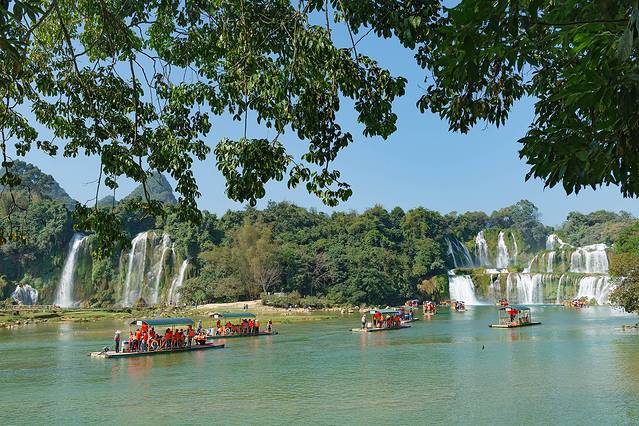 在中国与越南接壤的地方,不知道从什么时候起就流淌着一条清澈的河,不论四季寒暑,她始终碧绿清凌,纯朴得像大山里的女孩,人们给她起了一个美丽的名字——归春河。而德天瀑布正位于归春河上游,清澈的归春河是左江的支流,也是中越两国的界河。