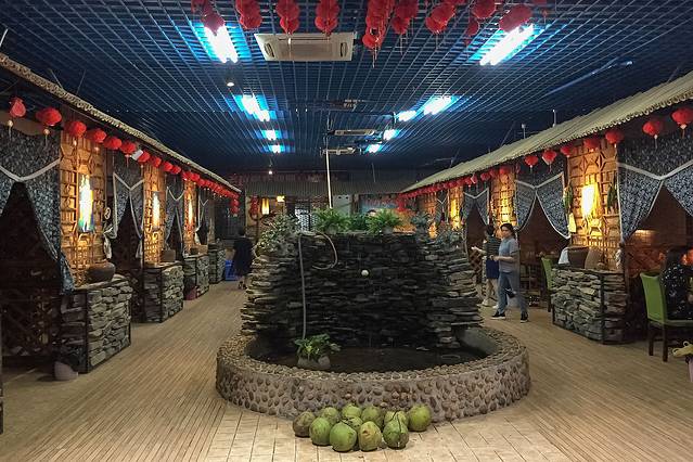 从银滩出来,公路对面就是一溜的大排档,主要以海鲜为主,来之前网上亦有传闻,很宰人。乘坐三轮车的时候,师傅也是这样说到,建议我们到渔村吃饭。本来是在大众点评上看好了一家餐馆,结果被师傅忽悠到了渔村,渔村在背街,其实也是一溜大排档,价格要比银滩便宜一些, 但比武汉还是贵了许多,不过既来之则安之,体验一下也好。