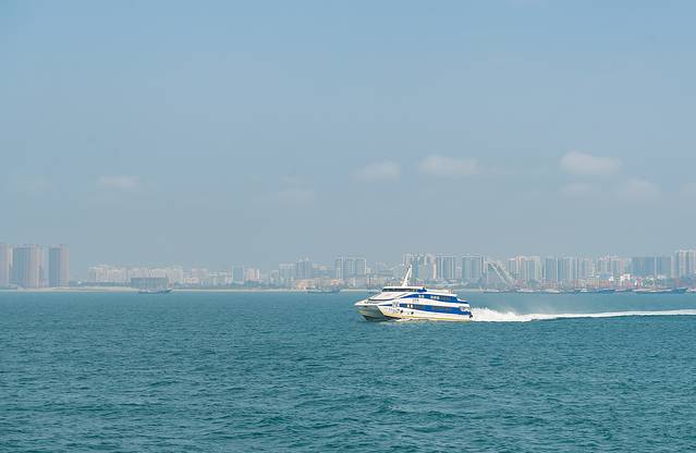 取票、安检后提前进入乘船码头,今天阳光明媚,天空蓝蓝的,码头上的风景很养眼,又是一阵猛拍后才登船离岛。