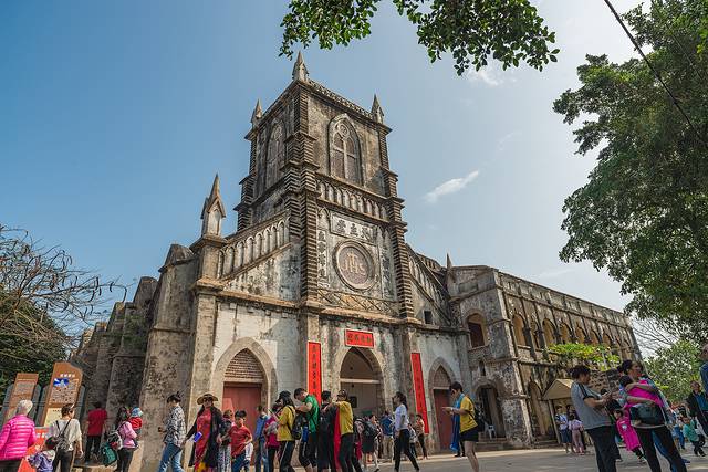 天主教堂位于涠洲岛东面的盛塘村圣堂景区,是涠洲岛最著名的人文地标,也是晚清四大天主教堂之一,这座教堂由法国传教士始建于1853年,颇具建筑特色,属于典型的文艺复兴时期法国哥特式教堂。