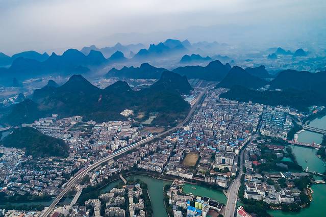 办理入住后,来到酒店顶层,用无人机从高空俯瞰桂林,不知是雾还是霾笼罩着这座城市,“甲天下”的城市也步入这样的环境中,没有给我带来一丝久别重逢的喜悦,倒是一种失望的感觉袭上心头。