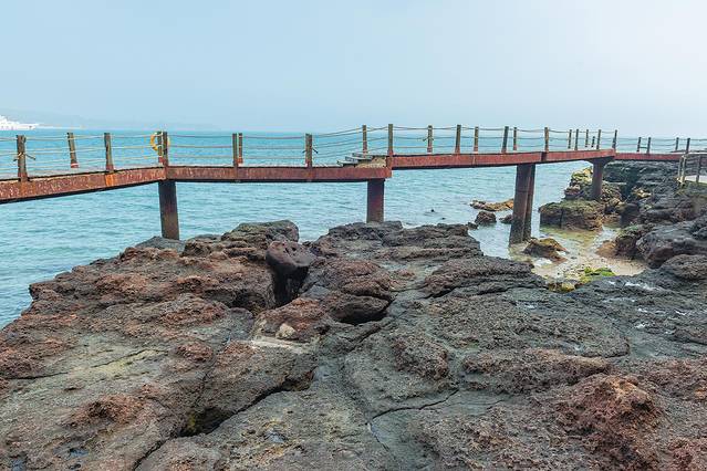 再往下行走就来到了沿海边的一条木栈道,这一路上都是景点,风光无限。