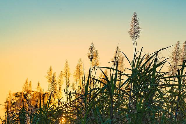 这个长着穗花的是什么植物?走近看原来是很细的甘蔗,只有我们平时吃的甘蔗一半粗,尝试掰断一株尝尝,未能成功,我想这种甘蔗可能是专为榨糖的品种。