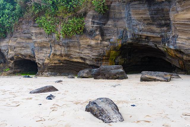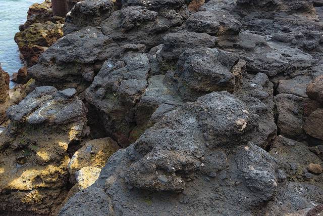 退潮后的海滩格外的漂亮,巨大的火山岩石一层一层的,在阳光的照射下特别的壮观。