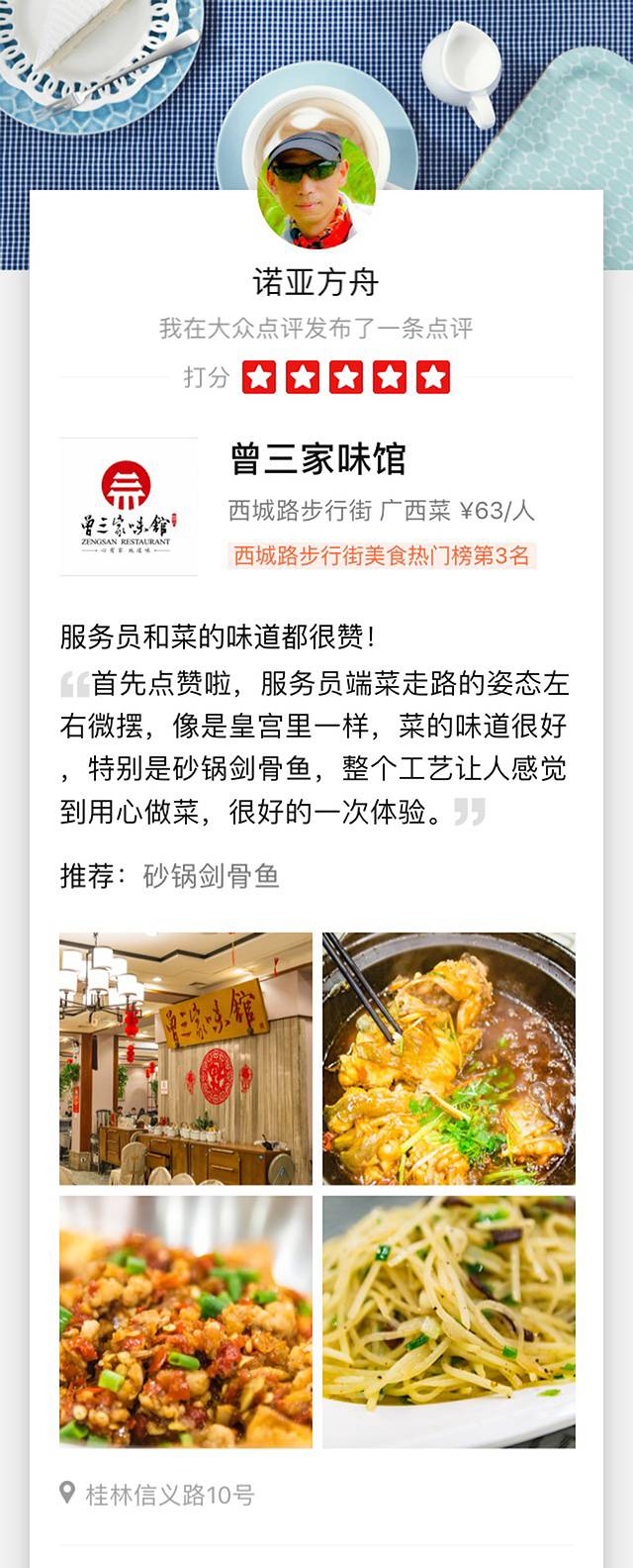 晚餐在大众点评上查看周边美食,选了离酒店较近的曾三家味馆,点了份2-3人餐,又是打折,又是送券,费用65元。