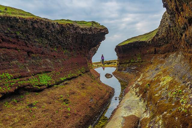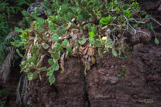 相比这些暗淡的火山岩石,绿色的植物给人们带来轻松的感觉。
