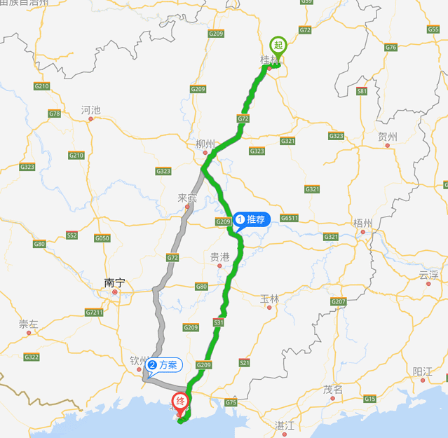 14时,离开北海,启程前往崇左喜来德大酒店,导航显示约277公里,驾车约需3小时30分。