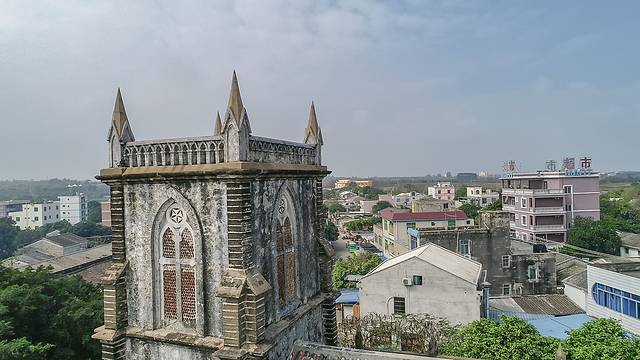 从五彩滩景区出来,提前20分钟和三轮车师傅打电话来接我们,送我们去天主教堂。