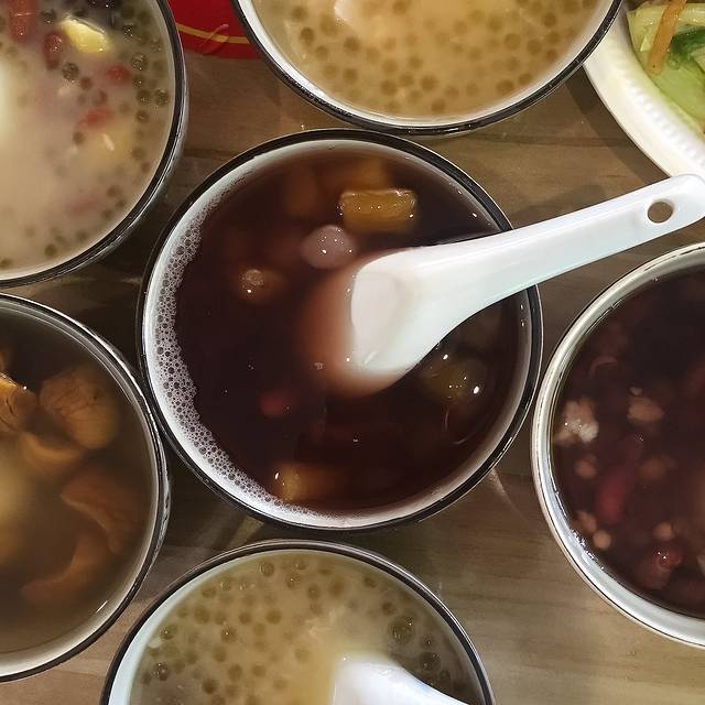 可以用来做糖水的食材种类不是一般的多,各种受欢迎的甜品价格也实惠,一般是4-7元一份,香芋西米、白果红枣、栗子桂圆、薏米马蹄、白果栗子、五加等都是最常被翻牌子的品种。