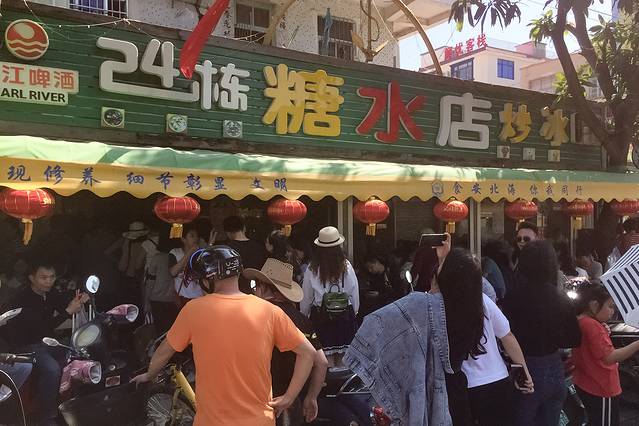 在北海这个城市,糖水店一般不会弄的充满舒适的文艺店铺的样子,反而是非常亲民的路边排档的形式,海鲜或者烧烤搭配糖水在本地人看来是绝配哦。在侨港最有名的两家糖水老店就是“港湾糖水”和“24栋糖水店”,孰赢孰输已经不重要了,他们的地位都是难以撼动的网红店。