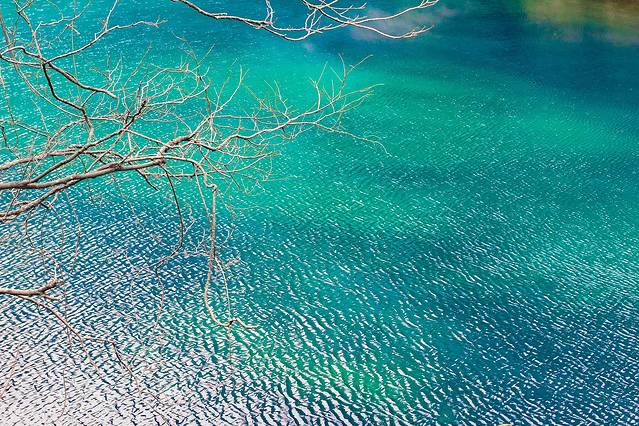 卧龙潭湖水湛兰清澈,岸上的绿树、竹林倒映湖中,色彩斑斑斓绚丽,可与“九寨沟”、“七彩湖”媲美。最南端的卧龙潭,那个水哟真的是蓝绿色的宝石一样,两岸的竹林倒映其中。