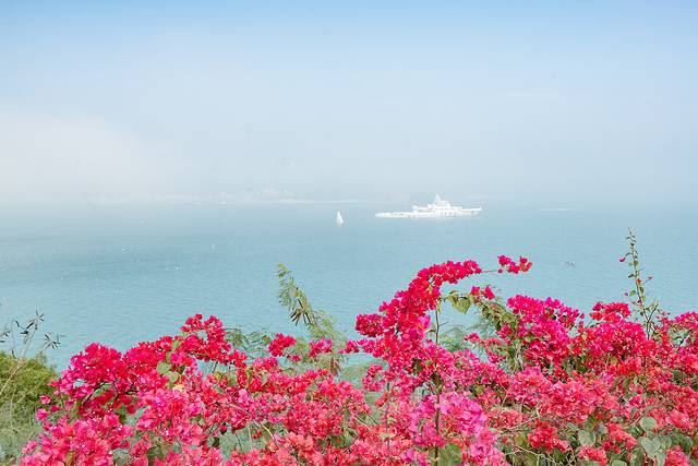 我的眼睛在海面上搜寻着,期盼能看到鲸鱼,因为前几天,某新闻上晒出了此海域鲸鱼出没的图片,所以我一直站在船舷上希望能邂逅她,直到到达涠洲岛码头,也未能如愿,是啊,世间有些事可遇不可求,坦然面对好了。