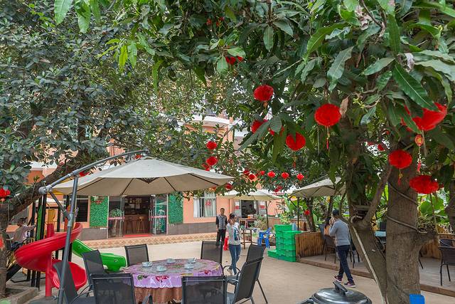 说是海景酒店,其实就是一般的客栈,标间400元/天,住宿条件一般,具备热水、电视、wifi,不能谈性价比了。酒店院子里面撑着遮阳伞、棚,摆放着餐桌,茂盛的植物生长在周围,一种典型的东南亚风景。
