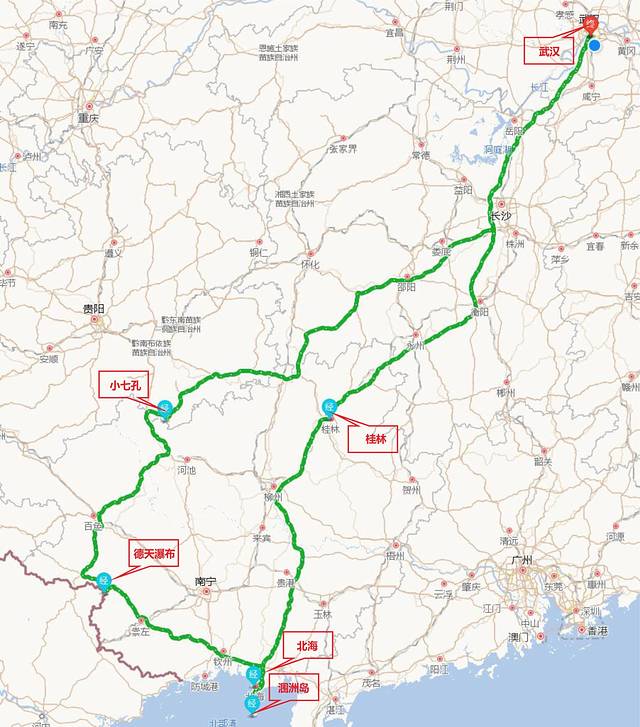 武汉—北海—涠洲岛—德天瀑布—荔波—武汉