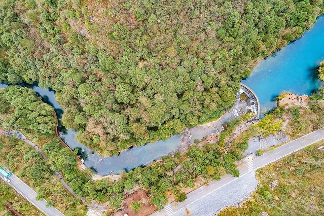 进入东门,大七孔在右边方向(不用乘车游览),小七孔乘车往左边方向,观光车送我们到西门返程站,从这个点往东门的方向一站站游玩。整个景区的观光车辆充足,到任何一个站点等候乘车不超过5分钟,很方便,这是我经历过车辆线路规划最好的景区,景区卫生间、垃圾箱也很多。
