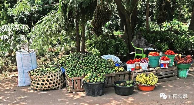 是摆满热带水果的小摊点。