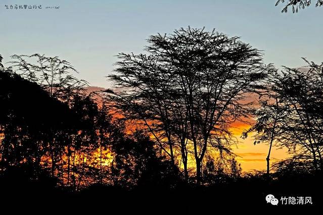 太阳在茂密的树林间缓缓落下。