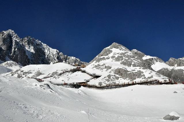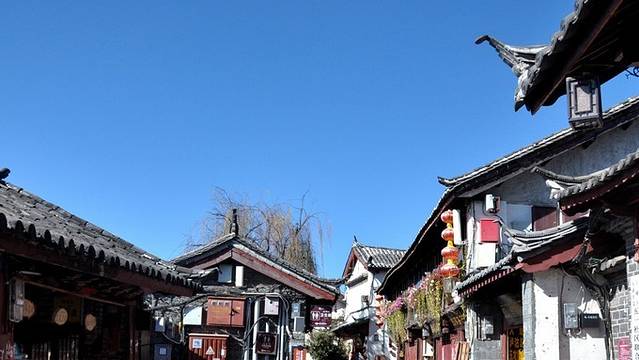 出来逛了没多大会儿,天气也渐渐暖和起来了,街上的人明显增多,古城开始热闹起来,我们逛到十二点多了还意犹未尽,吃了中午饭就开车准备去拉市海,在集合的地方看见了玉龙雪山的影子,在蓝天的映衬下格外壮美,这也让我们对明天的雪山之行多了一份期待