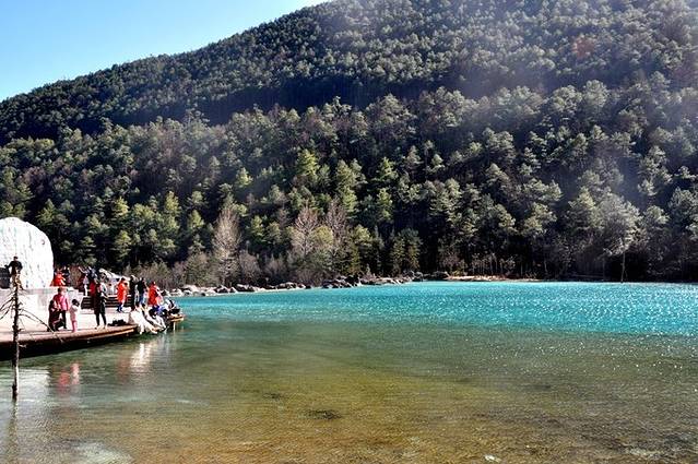 下了山坐景区的观景车去了蓝月谷,这边景色太美了,大家的福利时间,拍完照去服务区吃了饭