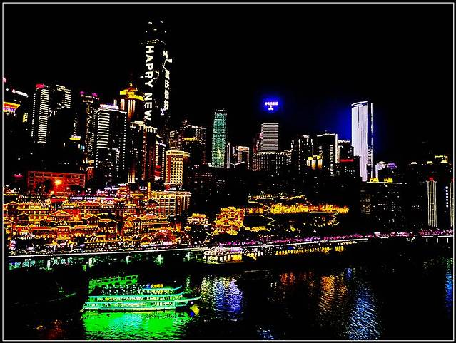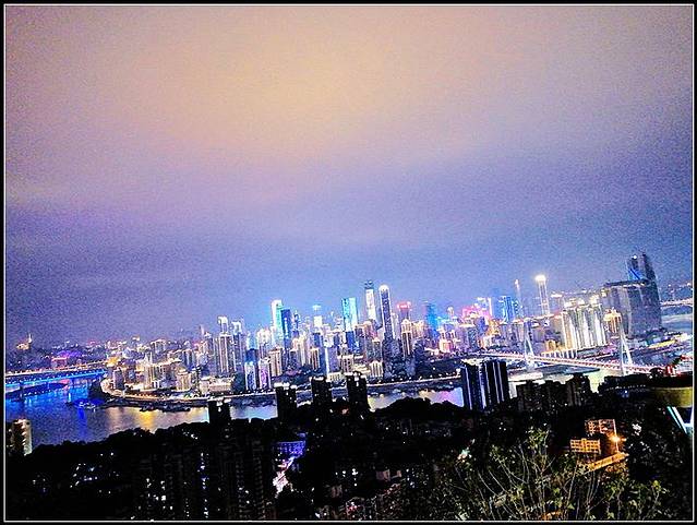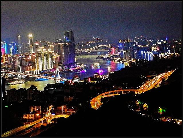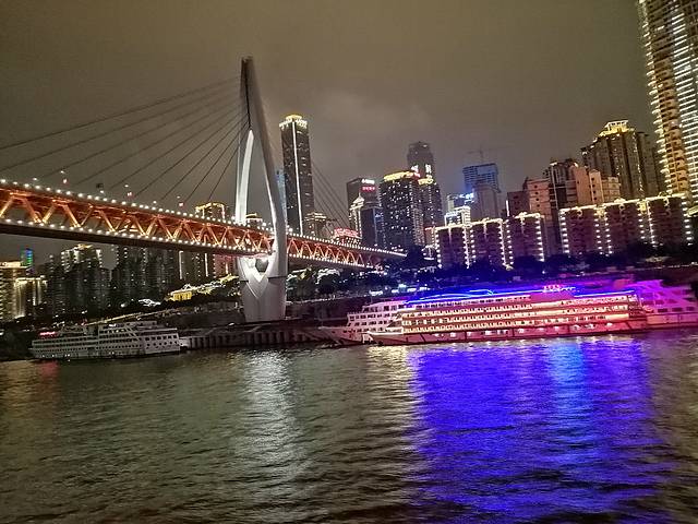 下机后就屁颠屁颠地寻找酒店的路,简单吃了个当地的正宗抄手(其实真不知道哪一家才算是正宗),放下大包小包就迫不及待到附近的解放碑溜达了一圈,顺带看一下有啥好吃滴(啥都是宵夜档的串串),果断来个麻辣火锅刺激一下味觉,饮饱喝醉,是时候消耗卡路里了,徒步向洪崖洞出发,那场面实在是太壮观了,一眼看过去全是人头......,没办法,谁让重庆多的是网红景点,好不容易挤到景区,逛了一圈,觉得洪崖洞的美是用灯光堆成的,之后转战到千厮门嘉陵江大桥,这桥要是一定要全程走完,我真没那个脚骨力,所以我在这里跨栏跑了(对不起,我做了一个不太文明的行为,大家别学)同志们冲啊,那感觉就像是在用生命来奔跑的。
