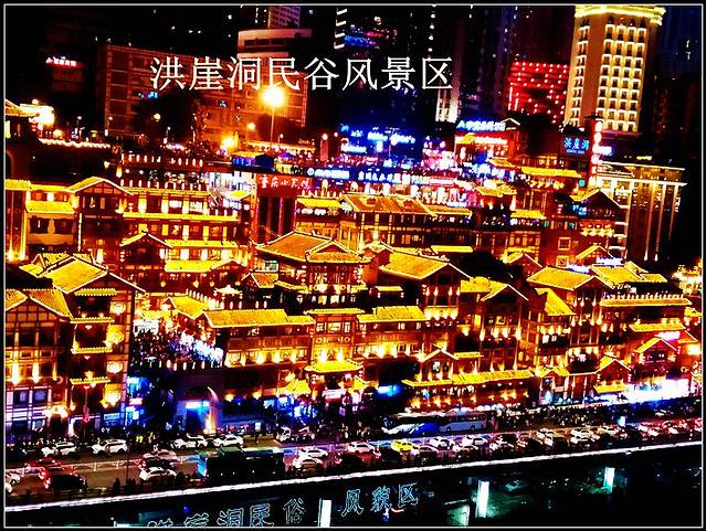 洪崖洞:以最具巴渝传统建筑特色的吊脚楼为主体,依山就势,顶层可远观江景,夜晚时候灯火通明,堪称山城一景。