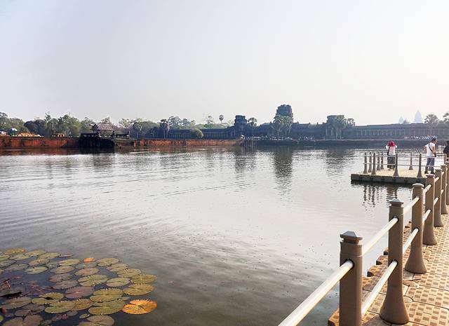 小吴哥护城河上的桥在修,所以在桥的不远处架了一座浮桥,游客就从浮桥过河