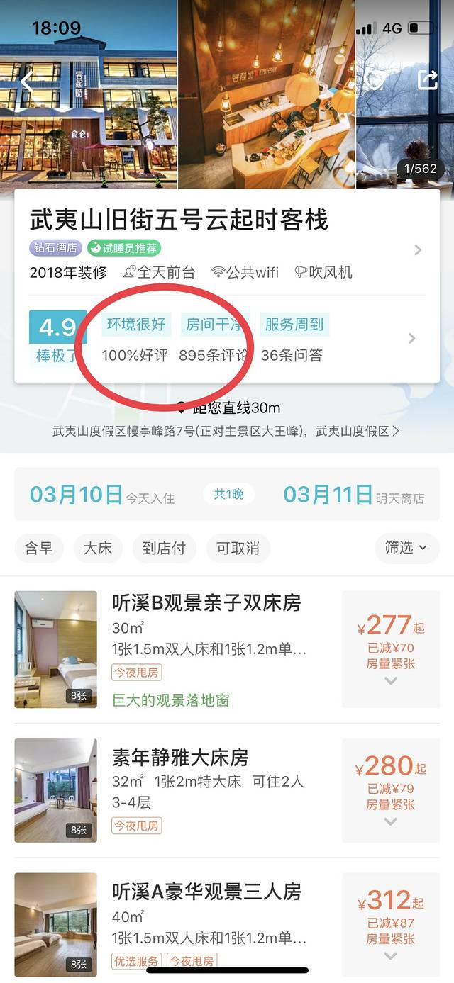 1、住客印象:旧街系列客栈是入住 武夷山 的首选,如果您在意的是超高性价比,旧街五号云起时客栈无疑是不二之选。不论从定价、地理位置、服务水准、设施设备、体验感等方面来看,都是能带来惊喜的。