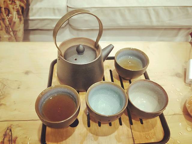 茶几上摆放了一套精致的茶具,老公很喜欢。
