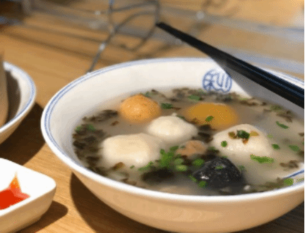成型的鱼丸煮沸之后,捞进碗里,撒上紫菜、葱花和胡椒粉,再来点儿白醋,一碗美味的正宗福州鱼丸就诞生了。