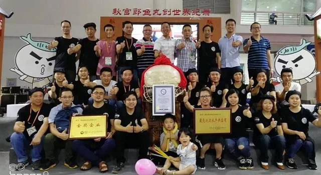 做鱼丸,秋官郎从未停下创新的脚步,秋官郎对于鱼丸的钻研还得到了英国世界纪录认证机构(WRCA)的认可。秋官郎鱼丸制作出的世界上最大的包心鱼丸,重达256.6斤,直径66.8厘米,研发过程历时一个多月。因为鱼丸的体积巨大,制作工艺也非常复杂和精细,皮和馅需要分离制作,而鱼丸浆体温度需要控制,包裹鱼丸馅过程的技术要求就更高,难度之大需要四个资深鱼丸制作师傅手工制作,同时还需要六个制作师辅助才能完成。秋官郎创下的世界记录至今被福州人传诵在大街小巷中,不仅成为福州美食文化中的传奇故事,还让福州鱼丸响彻海内外。
