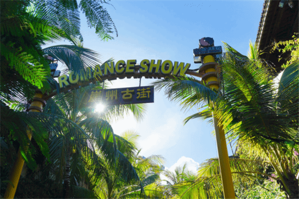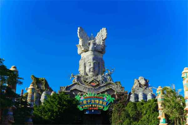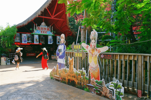 三亚的千古情景区以当地的少数民族文化为背景,抵达的这一刻就好像来到异国国度。门口聚集大小一日游的旅行团,他们与景区各类快闪、街头表演、商铺交错着,好像集市一般,午后才是这里最热情的时刻。