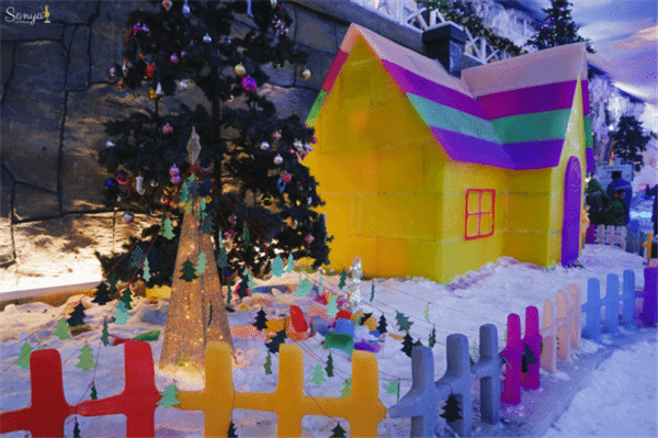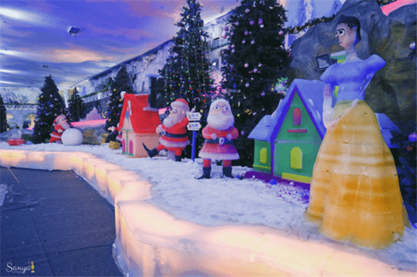 虽然从来没有去过哈尔滨,但冰雪世界满足了我欣赏冰雕的小小愿望。我最喜欢的一座冰雕是圣诞老人驾驶着麋鹿雪橇发放礼物的景象,毕竟所有欧美节日里我是最爱圣诞节的。每当看到冰雪漫天的画面,我都会不由自主的想起圣诞节。耳边此时仿佛响起了《All I want for Christmas is you》,真是浪漫极了。